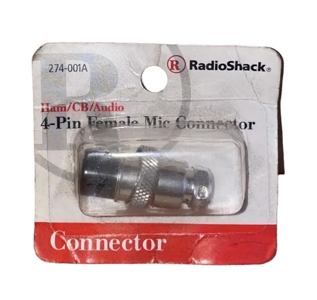 Replacement microphone connector for CB microphones. 4 pin plugs. Connects into any 4-pin CB or 10-meter radio.