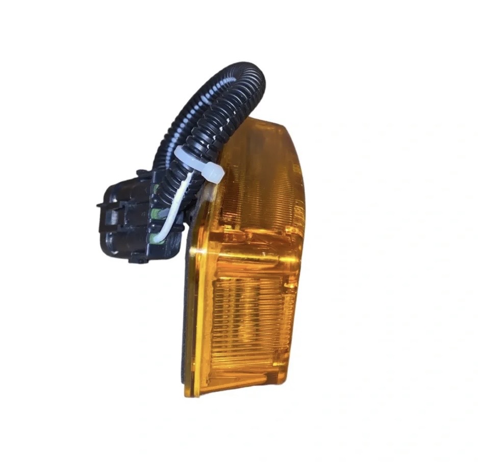 This is a 12V amber colored marker or clearance light designed for MCI buses, providing reliable LED illumination with a single function reflex lens.