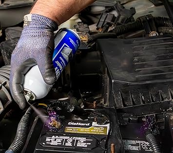- Spray on batteries, battery terminals, and cables, in or out of storage